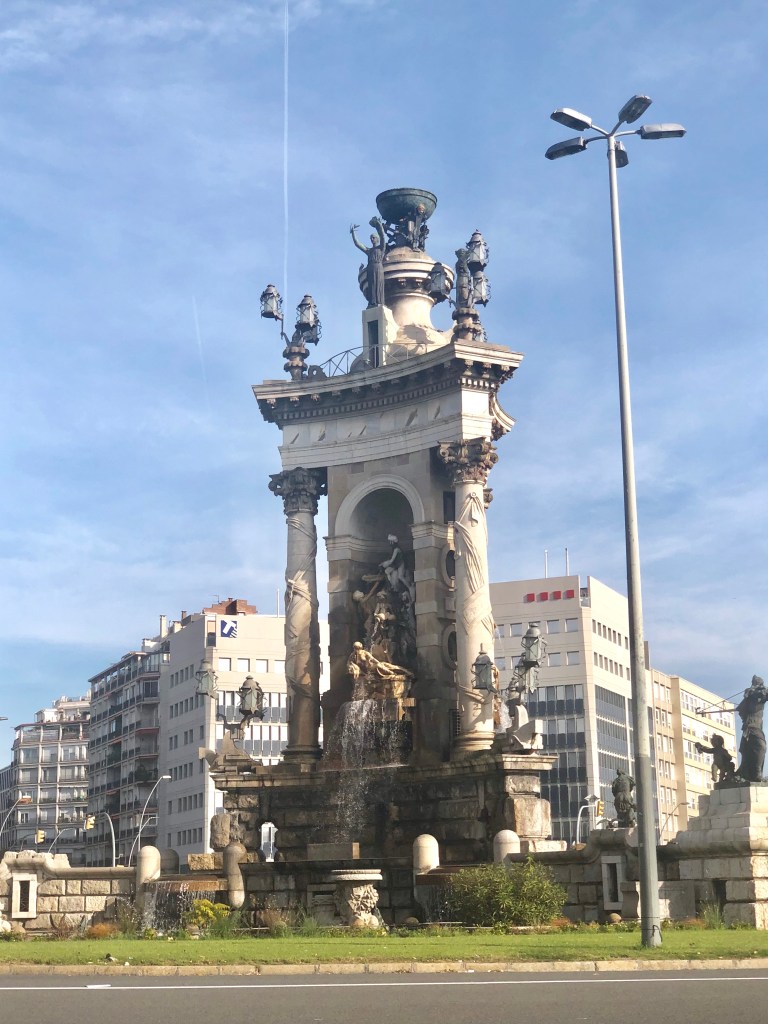 Montjuic é o parque do show das aguas e fica perto da Praça da Espanha