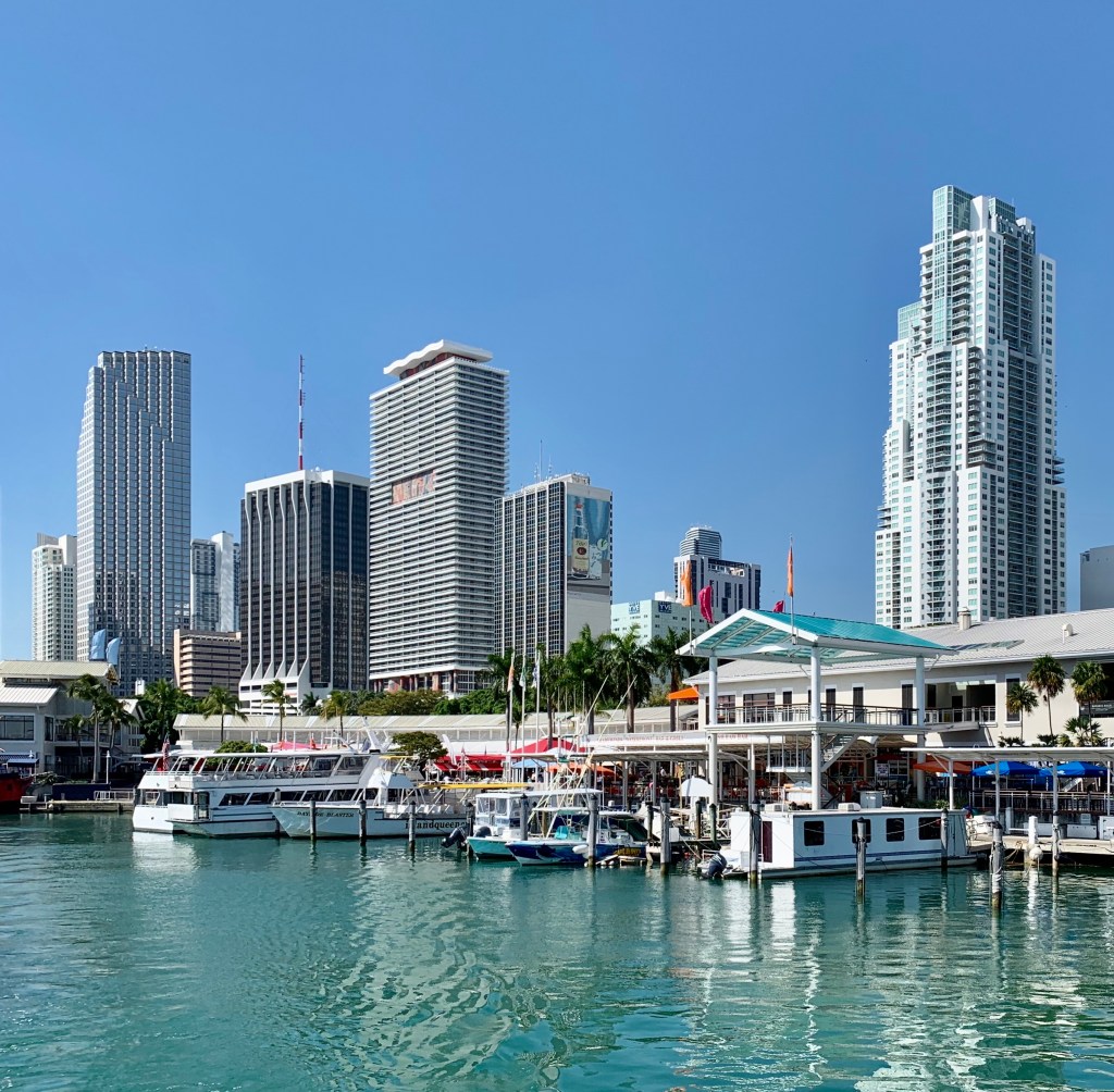 Bayside Marketplace é um pequeno shopping com restaurantes famosos e uma vista sensacional das águas e dos edifícios Downtown